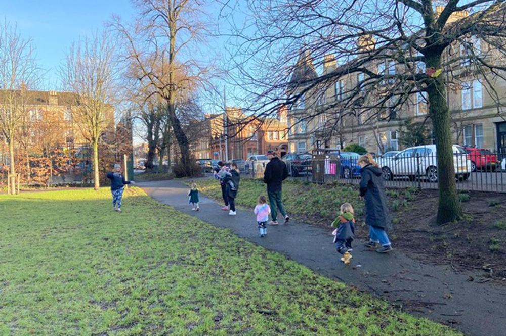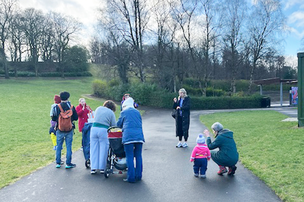 A Parkwalk is great fun in a stimulating and refreshing stroll in the company of other children and adults. Enjoy the outdoors with some music and movement. Singing is not compulsory but it is contagious!! Walking is none too vigorous but enlivening. It may even help some get to sleep! Children and adults!